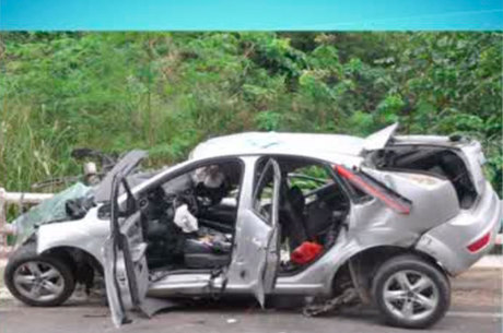 Impacto da batida foi tão forte que o motor e a caixa de marchas do carro se desprenderam